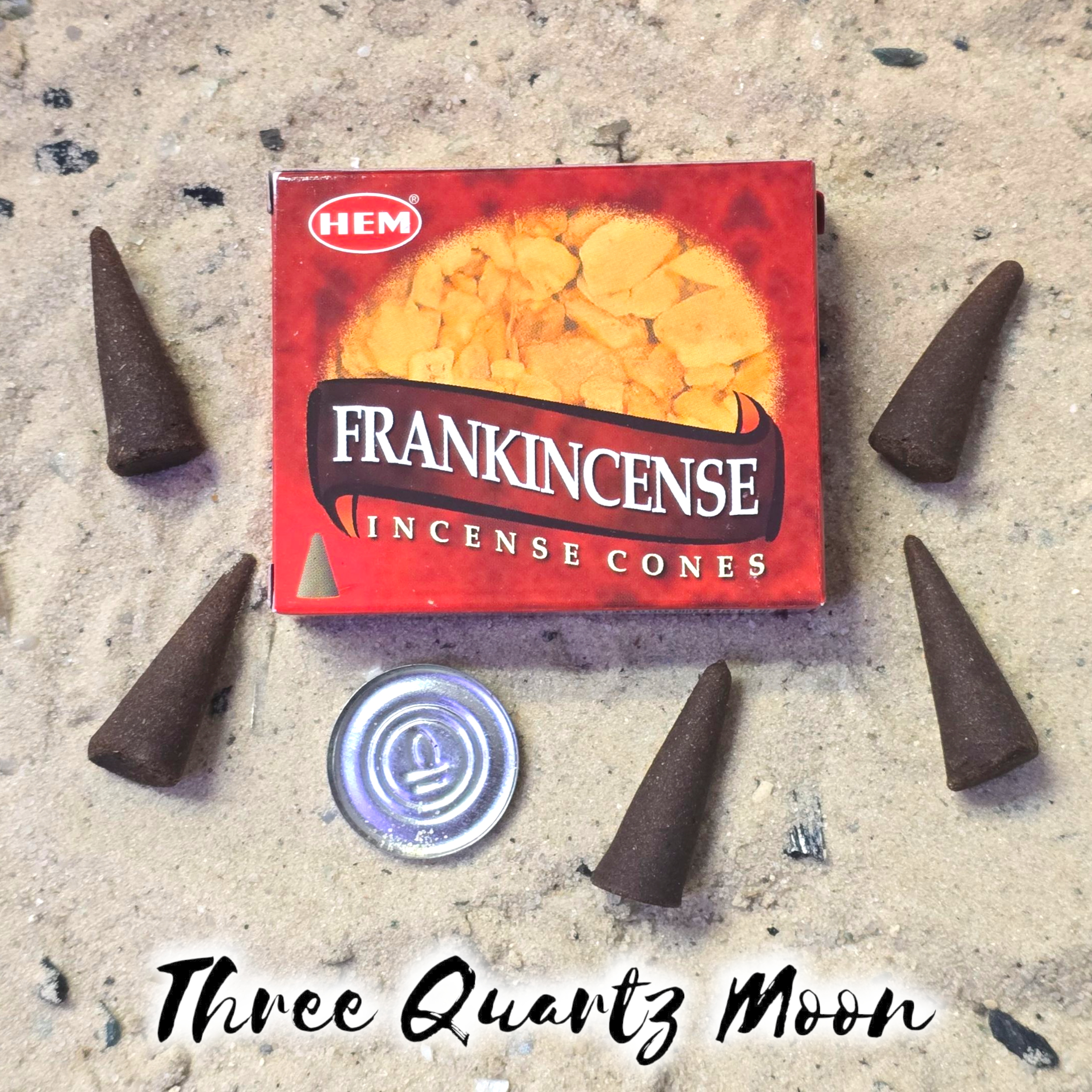 🔥 Each cone burns for about 20–30 minutes depending on airflow and environment. Best used in a heat-safe burner or cauldron, but a small dish with sand or salt and the included metal disc will do the trick in a pinch.