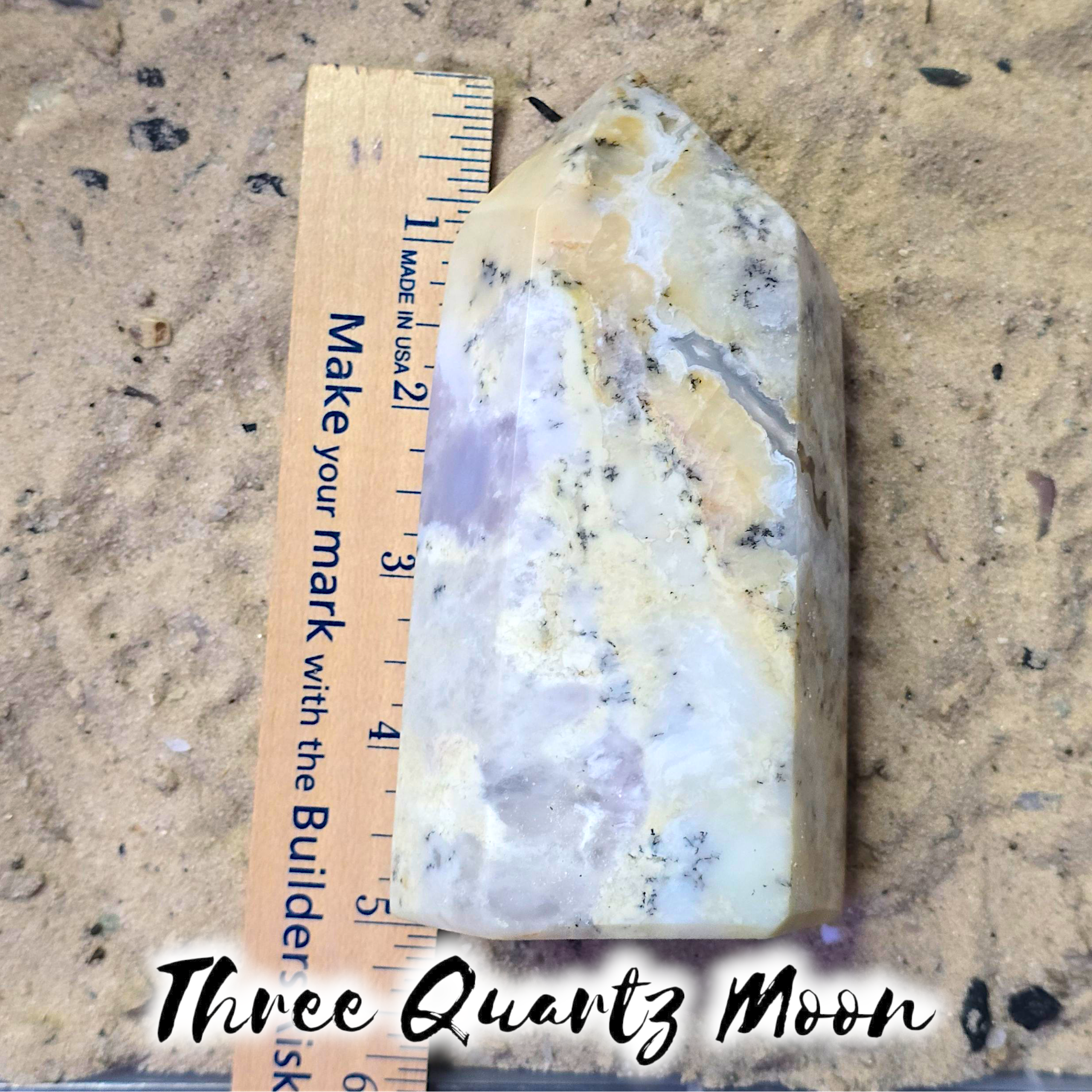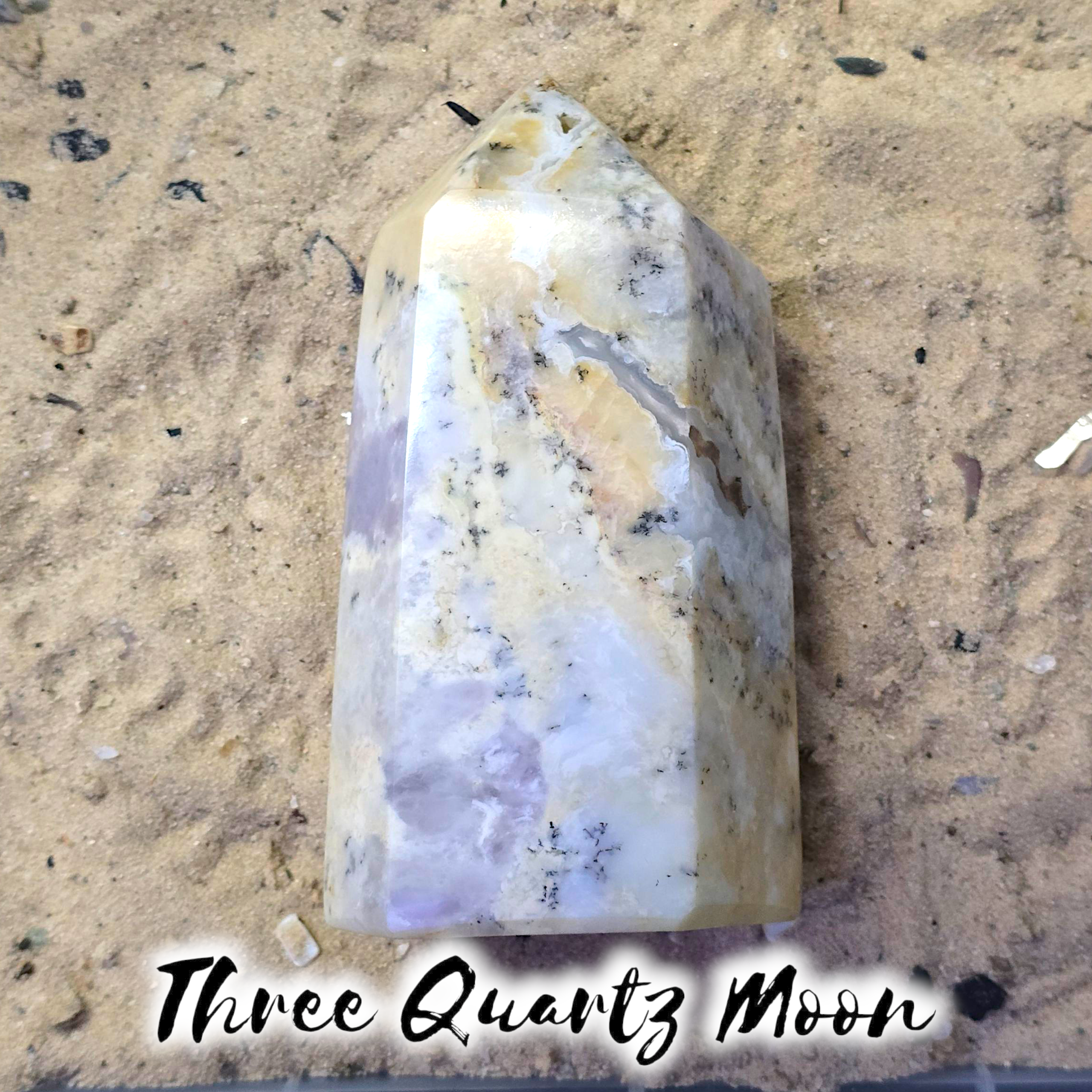 💜🌿 This polished Violet Dendritic Agate tower is a one-of-a-kind piece featuring a beautiful mix of cloudy lavender hues, creamy whites, and intricate dendritic patterns throughout. A subtle druzy pocket adds extra magic to the front face. Perfect for meditation spaces, intuitive work, or grounding your spiritual practice with beauty and balance.
